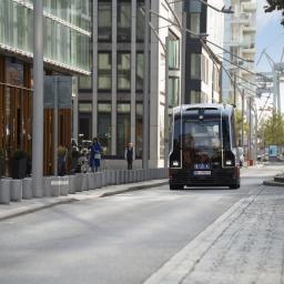 Im Testbetrieb kutschiert der autonom fahrende Elektro-Kleinbus Heat künftig Fahrgäste durch die Hamburger Hafencity. Ein Fahrzeugbegleiter ist jedoch an Bord.