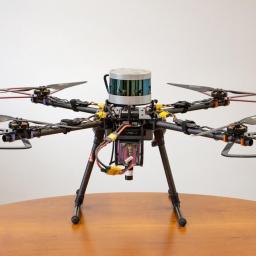 Eine Drohne des IPH findet sich in unbekannten Innenräumen zurecht. Sie tastet die Umgebung mit ihren Sensoren ab und orientiert sich per Kamera und LiDAR.
