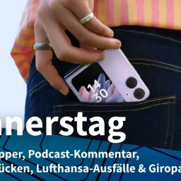 Klapp-Handy für 1000 Euro + Kommentar zur Podcast-Entwicklung + Attacken auf Microsoft 365 & Windows + Flugausfälle wegen Bauarbeiten + heiseshow über Giropay