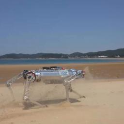 Roboterhund RaiBo stokelt im Sand nicht herum. Er läuft auf ihm so sicher wie auf festen Untergründen. Ein spezieller Controller macht es möglich.