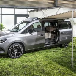 Mercedes zeigt auf Basis der T-Klasse die Studie eines vergleichsweise kleinen Campers mit Elektroantrieb. Das Serienmodell soll 2023 folgen.
