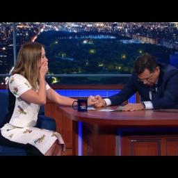 Stephen Colbert and Emily Blunt pretend to hold back from vomiting on The Late Show. Blunt told Colbert how much she enjoyed his vomit takes, a technique he often used on The Colbert Report and even during his time on The Dana Carvey Show, so the two read the final lines of Gone With the Wind while pretending […]