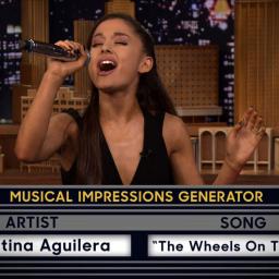 On a recent episode of The Tonight Show, host Jimmy Fallon played a game of “Wheel of Musical Impressions†with singer and actress Ariana Grande. Ariana nailed her performance of the classic children’s song, “The Wheels on the Bus,†that she had to sing in the style of Christina Aguilera.