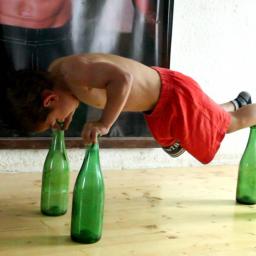 Impressive five-year-old Claudio Stroe does a series of push-ups while balancing on four bottles. Claudio is the younger brother of record-holding child bodybuilder Giuliano Stroe. via Boing Boing