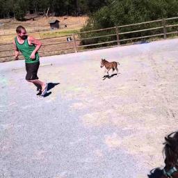 A teeny tiny 3-day old miniature horse named Sammy adorably stuck close to his human Sebastian as the two of them ran circles around the dirt arena while the colt’s mom Grace looked on. Later on, Sammy had a bit of trouble getting past the gate, but went into full gallop once he got through. […]