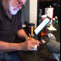 A very pesky African grey parrot named Stanley repeatedly stole the pencil out of the hands of his loudly protesting human. Neither Jet the cat nor Roscoe the dog seemed willing to jump in to help, so silly Stanley got his way. via reddit