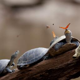 A photograph by Ama la Vida TV captures a pair of Dryas iulia butterflies drinking the tears of turtles in Ecuador. The behavior is known as lachryphagy (tear drinking), and is done as a way to gain nutrients and moisture. The photograph won the 2014 Wikimedia Picture of the Year competition. photo via Wikimedia via Twisted Sifter