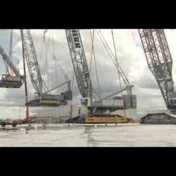 At a 2012 demonstration for a group of their customers, Leibherr Mobile Cranes used a series of increasingly large industrial cranes to lift one another into the air. via reddit