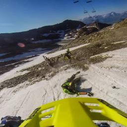 Intense GoPro video from Polygon UR Team bike rider Jamie Nicoll crashing into other riders at the start of an insane 30 kilometer Megavalanche mountain bike race down a glacier in the in the French Alps. via UPROXX