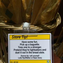 Comedian Jeff Wysaski of Obvious Plant recently placed a series of funny but ultimately not very helpful shopping tips around a grocery store. The tips give shoppers advice on things like having more fun while shopping, making breakfast more “metalâ€, and even how to burn some extra calories at checkout. photos via Obvious Plant