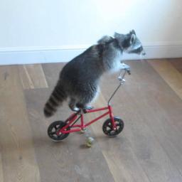 An adorably talented raccoon named Melanie gleefully rides across the living room on her red bicycle, her purple skateboard and her pink scooter. According to her human, Melanie is the “world’s smartest raccoon“. image via Melanie Racoon via Tastefully Offensive