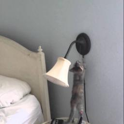 A Tiny Kitten Accidentally Figures Out How to Turn on the Bedside Light by Hanging on With Her Teeth