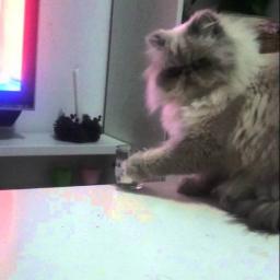 A rebellious cat hesitates for just a second before defiantly knocking a glass of water over the edge of a table in the face of of his human Jennifer‘s repeated protests. Gato malo (“bad catâ€) indeed. via reddit