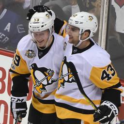 PITTSBURGH - Jake Guentzel still finds himself staring. And really, it's kind of hard to blame him.A year ago he was fresh out of Nebraska-Omaha trying to find his legs with the Pittsburgh Penguins' AHL affiliate, all speed and youth and talent anxious at what the future might hold.And here he is now, the youngest member of the NHL's hottest line, sharing the ice with his childhood idol thinking to himself, `Yes, that really is Sidney Crosby over there.''Gulp.''It's crazy,'' Guentzel said with a shrug.And at the moment kind of unstoppable for the defending Stanley Cup champions, who remain in the thick of the Metropolitan Division race with Washington and Columbus despite missing 66 percent of its starting blue line and center Evgeni Malkin, who is out with an upper body injury that will keep him out of the lineup in Buffalo on Tuesday.Yet the Penguins have stayed afloat anyway thanks in part to Crosby's usual brilliance and an unexpected alliance created on the fly by head coach Mike Sullivan.Developing chemistry with the best player in the world can be an inexact science. Crosby, the 22-year-old Guentzel and 24-year-old Conor Sheary have created some almost instantaneously since Sullivan threw them together against Edmonton earlier this month.In the six games since they've started hopping over the boards together, they've combined for 10 of Pittsburgh's 20 goals and racked up 16 assists.Every red-light moment of Crosby's natural hat trick in Sunday's 4-0 victory over Florida came courtesy of the sticks of his precocious linemates, the ones who make up for in enthusiasm and innate hockey IQ what they lack in experience.''The main thing is that we're consistently getting chances,'' said Crosby, who leads the NHL with 40 goals. ''With that, it doesn't matter who gets them, they'll go in. Those guys have a ton of speed and they're strong on pucks and making plays. We'll continue to get better.''They'll certainly continue to play together indefinitely, though Crosby isn't one for trying to come up with some sort of gimmicky nickname like the ''HBK'' - Carl Hagelin, Nick Bonino and Phil Kessel - that played so well together during last spring's run to the Cup a local restaurant chain created a sandwich in their honor.''I never got into the lines or the nicknames and I'm not going to start now,'' Crosby said with a laugh. ''I'll leave that up to you guys.''At 29, Crosby's old enough to know that nothing lasts forever. ''HBK'' might have been a revelation last summer, but they've long since split up.For now, Sid and the Kids (just a suggestion) will keep doing what they're doing, which is mainly keeping defenses scrambling to keep up.''Sid's the glue there that holds that line together but certainly the three of them, to a man they've all played terrific for us,'' Sullivan said.While playing alongside Crosby certainly helps, Sheary and Guentzel are more than keeping up. Sheary managed just seven goals in 44 games as a rookie in 2015-16. He's already at 20 goals in 51 so far this season, a 5-foot-8 gnat in skates relentlessly working his way into tight spaces or beating opponents to loose pucks.They also keep their heads up rather than developing tunnel vision about getting to the net and hoping for the best. Call it the byproduct of knowing Crosby is liable to try to find them at any moment while trying to thread a pass few others can make.Crosby and Sheary both offered Guentzel - who had two goals during his auspicious NHL debut in a loss to the New York Rangers in November - the same bit of advice so he wouldn't get too wide-eyed.''I may have told him once or twice just play your game,'' said Sheary, who went through a similar indoctrination process of learning to play with Crosby last season. ''Other than that he's a smart enough player, he's a good enough player. He can play with anyone.''It certainly looks that way. While it's hard to imagine Steph Curry or LeBron James hitting the court with two rookies in tow, Crosby has embraced the opportunity.While Sullivan stressed that Crosby remains ''the glue,'' having two players who seem immune to the pressure that comes with playing in the spotlight with the face of the NHL helps.''I don't think one's a scorer or one's a passer,'' Sullivan said. ''I think they're hockey players and they just play hockey. When the shot's there, they shoot. When it's not, they have the vision and the awareness and they see it.''And just as importantly, they're oblivious to the pressure of the moment. A quality that will be in high demand when Pittsburgh begins its quest to become the first team in two decades to repeat next month. No staring allowed.''Growing up you watch (Crosby),'' Guentzel said. ''So to be honest it's pretty special. I'm trying to make the most of it.''Copyright © 2017 Score Media Ventures Inc. All rights reserved. Certain content reproduced under license.