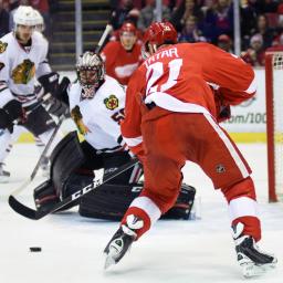DETROIT - Tomas Tatar had two goals and an assist, Jimmy Howard made 24 saves in his return, and the Detroit Red Wings beat the Chicago Blackhawks 4-2 on Friday night.Howard saw his first NHL action since injuring a knee Dec. 20 at Tampa Bay.Tatar scored what proved to be the winner late in the second period and added an insurance goal in the third period to end Detroit's three-game losing streak. He has a team-high 17 goals.Andreas Athanasiou and Xavier Ouellet also scored for Detroit.The Blackhawks lost for the second straight night and had their club-record road winning streak end at eight games. Trevor Van Riemsdyk and Artemi Panarin scored for Chicago.The Blackhawks opened the scoring at 4:23 of the first period on an impressive display of skill by Panarin and Patrick Kane. Just outside the Detroit zone, Panarin slid a backhand pass through defenseman Danny DeKeyser's legs to Kane, who carried the puck into the Detroit end. Kane zipped a quick cross-ice pass to a closing Panarin and he drove a one-timer past Howard.Detroit tied it with 3:35 left in the period. Using Tatar as a screen, Ouellet drove a rising shot from the point past goalie Corey Crawford for his third goal of the season.With only eight seconds to play in the second, Detroit regained the lead. Athanasiou accepted a drop pass from Nick Jensen and zipped a low shot by Crawford, who was again screened by Tatar.The Wings increased their lead to 3-1 15:17 into the second period. Gus Nyquist carried the puck into the Chicago zone and dropped a pass to Henrik Zetterberg. Crawford stopped Zetterberg's shot but Tatar was on the doorstep to smack the rebound home.A low point shot by Van Riemsdyk beat Howard on the stick side with just 44.3 seconds left in the second period to narrow Detroit's advantage to a goal.Tatar completed the scoring at 15:31 of the third period. Nyquist forced a turnover along the boards and fed the puck to Zetterberg. He relayed it to Tatar in the high slot and he whipped a shot past Crawford.NOTES: Including this game, Chicago will close out the regular season with 16 games over a 30-day span. ... Facing his former Detroit teammates for the first time, left-winger Tomas Jurco skated on a line with Marian Hossa and Marcus Kruger. ... Saying he was unhappy with his play in recent games, Detroit coach Jeff Blashill made rookie right winger Anthony Mantha, tied for second on the team with 14 goals, a healthy scratch . . . Defenseman Robbie Russo and forward Mitch Callahan made their Joe Louis Arena debuts as Red Wings . . . The Van Riemsdyk family has scored twice on the Wings this week. Trevor's older brother, James, scored for Toronto in the Maple Leafs' 3-2 win over the Red Wings on Tuesday night.UP NEXT:Blackhawks: Welcome the Minnesota Wild to the United Center on Sunday in a potential showdown for first place in the Central Division.Red Wings: Host the New York Rangers on Sunday.Copyright © 2017 Score Media Ventures Inc. All rights reserved. Certain content reproduced under license.
