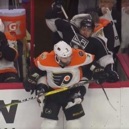 Steve Mason wasn't starting Saturday, but he still had to keep his head up.The Philadelphia Flyers goaltender got up close and personal with Los Angeles Kings defenseman Kevin Gravel, who was hip-checked into the Flyers' bench by Radko Gudas.Nobody appeared to be hurt on the play, and Mason seemed to get a kick out of it.Copyright © 2017 Score Media Ventures Inc. All rights reserved. Certain content reproduced under license.