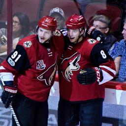Alex Burmistrov has made a great first impression with his new club.In five games since being claimed off waivers from the Winnipeg Jets by the Arizona Coyotes, the 25-year-old center has recorded five assists. Two of those came in Monday's win over Florida, including the primary helper on Tobias Rieder's overtime goal.His efforts have not been lost on head coach Dave Tippett.