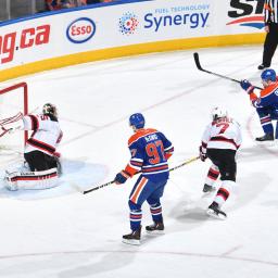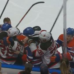 The honeymoon is over for Taylor Hall.After receiving a standing ovation following a video tribute in his return to Edmonton, the New Jersey Devils forward drew the ire of former teammate Zack Kassian for an elbow delivered right off a faceoff early in the third period.Kassian attacked Hall in the aftermath, and their teammates came to their defense, sparking a brief line brawl.Hall's elbow went uncalled by the officials, but he was given a double minor for high-sticking, while Kassian received a roughing minor.Copyright © 2017 Score Media Ventures Inc. All rights reserved. Certain content reproduced under license.