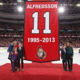 "I will forever be a Senator."Bestowing an honor not previously awarded in the modern era of the franchise, the Ottawa Senators retired the number of the greatest player in their history, raising Daniel Alfredsson's No. 11 to the rafters Thursday night at Canadian Tire Centre.