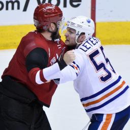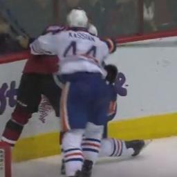 Things got heated between the Arizona Coyotes and Edmonton Oilers on Wednesday night.Late in what was eventually a 3-2 Oilers win, their first against Arizona in years, Oliver Ekman-Larsson hit Matt Hendricks hard into the boards as the two chased down a puck deep in the Coyotes' zone.Earlier in the game, Hendricks sent Coyotes defenseman Jakob Chychrun to the dressing room with a hit, so you could say he had a target on his back.After Hendricks hit the ice, Zack Kassian came in and delivered a brutal cross-check to Ekman-Larsson's back, sending the Swede to the ice. Kassian knew he'd have to answer for his stick work, and immediately dropped the gloves.Anthony Duclair, hardly a fighter, came to his defender's aid, and Kassian knocked him twice in the face. Finally, an irate Shane Doan went after Kassian, eventually taking the big Oilers forward down to the ice.Meanwhile, Martin Hanzal and Mark Letestu fought."Two teams that are competing pretty hard," Letestu said after the game. "Sometimes things boil over."Copyright © 2016 Score Media Ventures Inc. All rights reserved. Certain content reproduced under license.