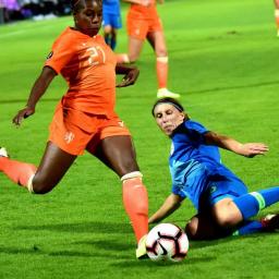 De Nederlandse voetbalvrouwen wonnen in en tegen Slovenië moeizaam met 2-4. Sherida Spitse maakte in het laatste kwartier twee doelpunten.