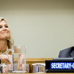 Ter gelegenheid van haar tienjarig VN-jubileum is koningin Máxima in het zonnetje gezet met een aantal korte feestredes en een warm dankwoord van secretaris-generaal Antonio Guterres.