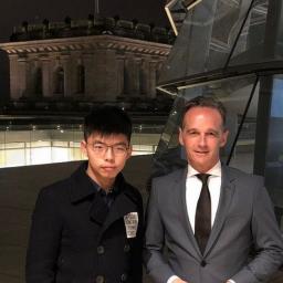 De Duitse minister van Buitenlandse Zaken Heiko Maas liet zich fotograferen met de prominente Hongkongse activist. ‘Respectloos’, vindt China.