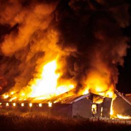 Een kippenschuur brandde woensdagnacht volledig uit. Hierbij kwamen waarschijnlijk 16.000 kippen om.