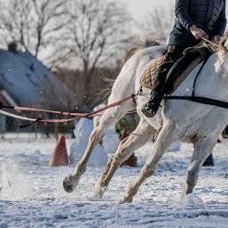 Voor het eerst in zestien jaar lag genoeg sneeuw in Markelo om de Grand Prix galopskien te organiseren: zo snel mogelijk zevenhonderd meter afleggen op ski's of een snowboard, voortgetrokken door een paard. Je ziet hier de saamhorigheid van het dorp."