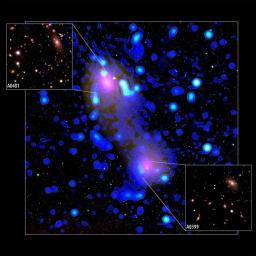 Een ‘rug’ van heet gas verbindt twee clusters van sterrenstelsels en produceert een bijzonder soort radiostraling.