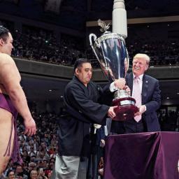 Met een royaal onthaal wil Japan voorkomen dat Trump ook met dit land een handelsoorlog begint. Abe at gedwee een cheeseburger.