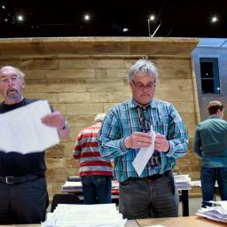 Om het dertigjarig bestaan te vieren, brengt Cie de Koe een boek uit. De voorstelling ‘Achter/af’ zou over dat boek moeten gaan, maar zet vooral de onderlinge verhoudingen op scherp.