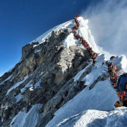 Een foto van een Nepalese bergbeklimmer laat de drukte zien op de top van de hoogste berg van de wereld.