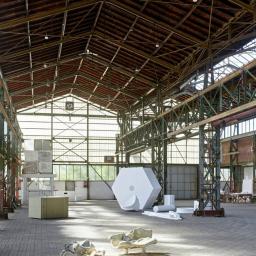 Nog één keer werken kunstenaars onder het oog van publiek aan nieuw werk in de Biesboschhal in Dordrecht tijdens de achtste editie van Dordtyart.