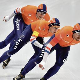 Sven Kramer, Douwe de Vries en Marcel Bosker verdedigden de titel van twee jaar geleden. De Nederlandse vrouwen wonnen zilver.