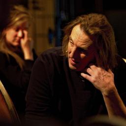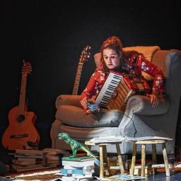 Theatermaker en regisseur Ilay den Boer verwelkomt de toeschouwers van En dus zal ik weer gaan, en stelt iedereen voor aan zanger en gitarist René Jonker.