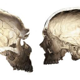 Neanderthalers hadden langgerektere hoofden dan moderne mensen. Dat zie je nu nog terug bij mensen met neanderthalgenen.