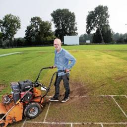 Groundsman Paul Polak (66) besteedt zestig uur per week aan het onderhoud van ‘zijn’ graswicket. De cricketbal moet erop kunnen stuiteren alsof hij een straatsteen raakt.