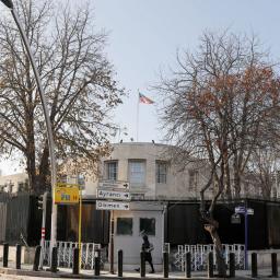 Het ambassadecomplex in de Turkse hoofdstad is maandagochtend vroeg vanuit een wit busje beschoten.
