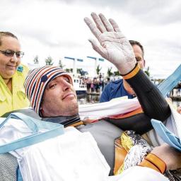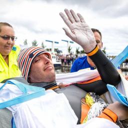 Net voor Dokkum eindigde vandaag de Elfstedenzwemtocht van Maarten van der Weijden. Hij kon en mocht niet meer.
