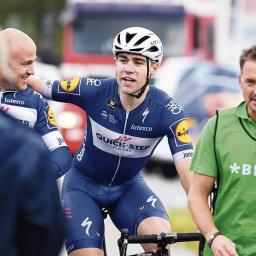 Wielrenner Sprinter Fabio Jakobsen (21) heeft zijn eerste World Tour-ritzege op zak. „Zo eentje kom je hooguit eens in de tien jaar tegen.â€