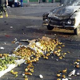 Bij een markt blies een van de aanslagplegers zichzelf op. De aanslagen zouden zijn gepleegd door IS-strijders.