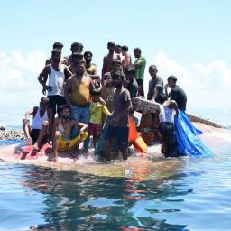 Een Indonesisch reddingsschip lokaliseerde donderdag een omgeslagen houten boot waaraan zich een nacht lang tientallen drenkelingen hadden vastgeklampt.