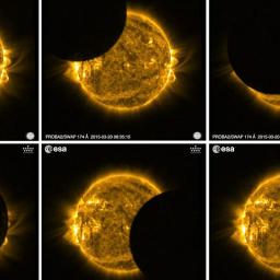 A European Space Agency mini-satellite captures the moment the moon passes in front of the sun in Friday's solar eclipse. The ESA's sun-watching Proba-2 monitors turbulence on the sun's surface using ultraviolet wavelengths. As well as being seen from space, the partial eclipse was visible across Europe, Russia and parts of the Middle East, Asia and north Africa Continue reading...