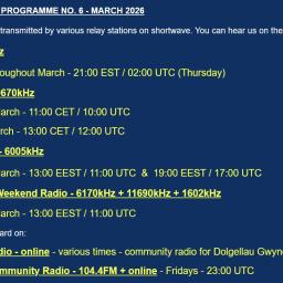 Many thanks toSWLing Postcontributor, Bill Tilford, who shares the following update: From the Isle of Music March 2026 This month will feature some exciting new and recent releases by Cuban bands. Friday, March 13, 2026, 3955 kHz, 1800 CET (1700 UTC), repeat 2300 CET (2200 UTC) Uncle Bill's Melting Pot March 2026 We are going [...]