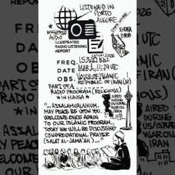 Many thanks toSWLing Postcontributor and noted political cartoonist,Carlos Latuff, who shares the followingillustrated radio listening report of a recent Voice Of Islamic Republic of Iran broadcast. Carlos notes: Voice of Islamic Republic of Iran, broadcasting during the US/Israel war on Iran, 15320 kHz Click here to view on YouTube. Click here to view on YouTube.