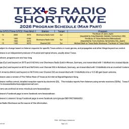 Many thanks toSWLing Post contributor Terry (N5RTC), who shares the following schedules for Texas Radio Shortwave (click images to enlarge, and see note below): Terry notes that they will have a complete April schedule once they receive the new A-26 schedule for all broadcasters. We will post updates on the SWLing Post when available.